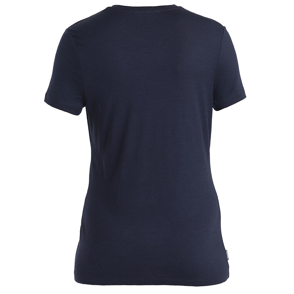 Le t-shirt en laine pour femmes d'Icebreaker vous fera passer une bonne journée. Ce T-shirt à manches courtes et col rond est naturellement antibactérien. L'imprimé sur la poitrine souligne votre look sportif.