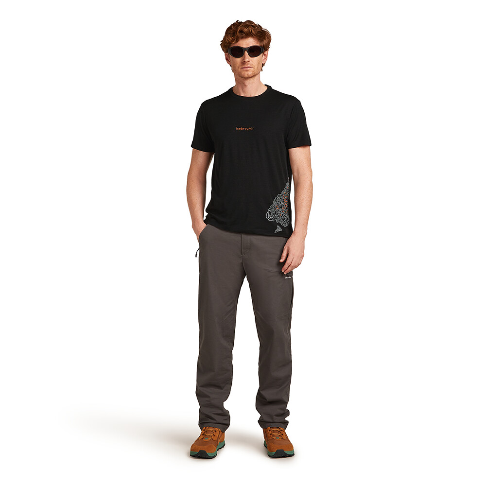 Ce t-shirt est fabriqué en 100% laine mérinos pour assurer confort, respirabilité et fraîcheur tout au long de la journée. La coupe à manches courtes et col rond s'adapte confortablement. Les coutures des épaules sont décalées pour réduire les frottements et rendre le t-shirt plus agréable à porter en randonnée. Les graphismes célèbrent l'évolution de la marque et représentent les 70 fermes de mérinos de Nouvelle-Zélande avec lesquelles Icebreaker travaille depuis longtemps.