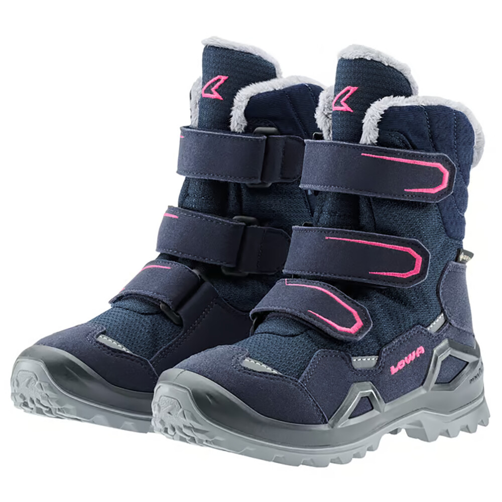 Bottes d'hiver imperméables pour enfants avec membrane Gore-Tex® Cirrus XT. Grâce à la fermeture Velcro facile, vous ne perdrez pas de temps à les enfiler.