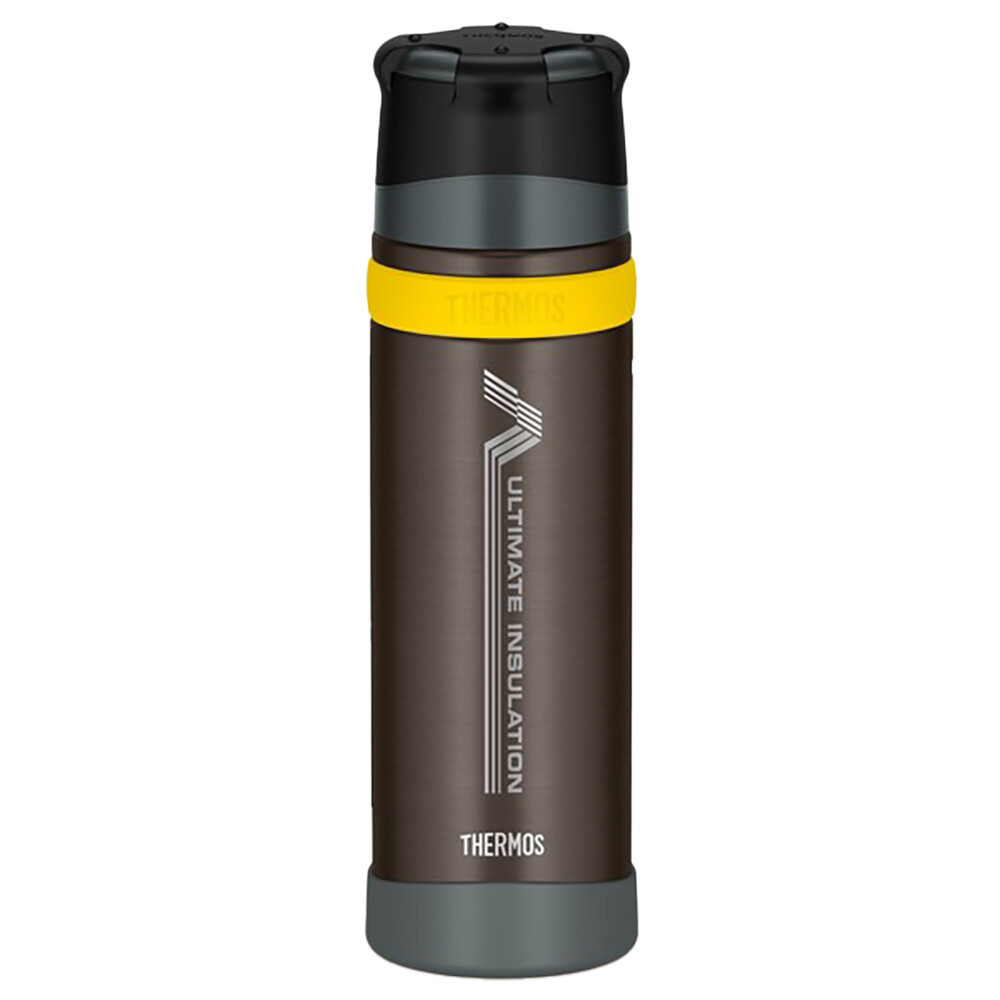 Le thermos Mountain à double paroi de Thermos est fabriqué en acier inoxydable de haute qualité tout en étant léger, comparable aux thermos en titane. Le manchon en caoutchouc sur le fond et l'anneau antidérapant sous le bouchon garantissent une manipulation sûre, même avec des gants épais, et protègent le thermos en cas de chute sur le sol. Il suffit de desserrer le double bouchon d'un demi-tour pour pouvoir le verser en douceur. Il conserve les boissons chaudes pendant 30 heures et les boissons froides pendant 32 heures.