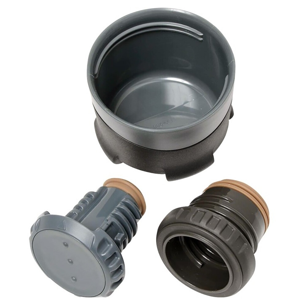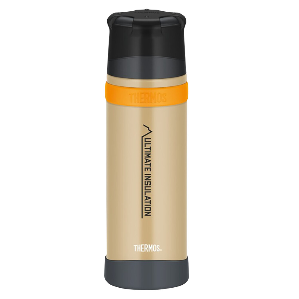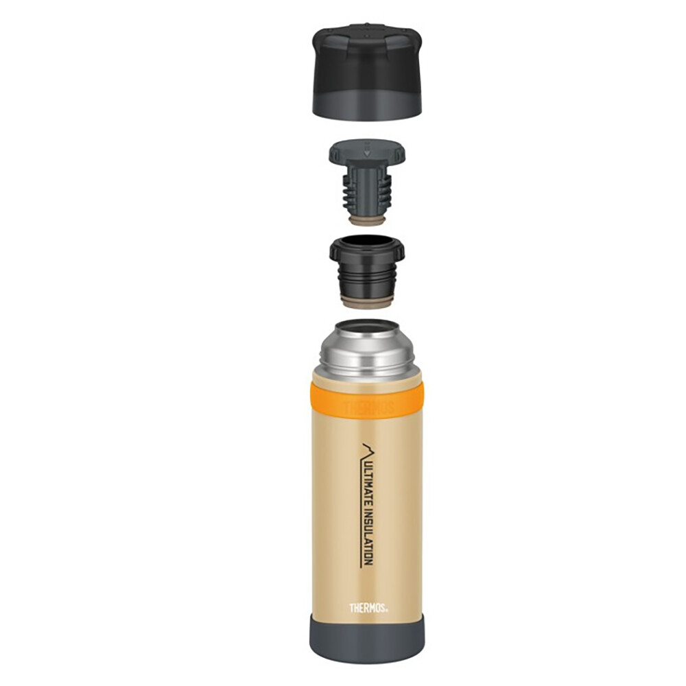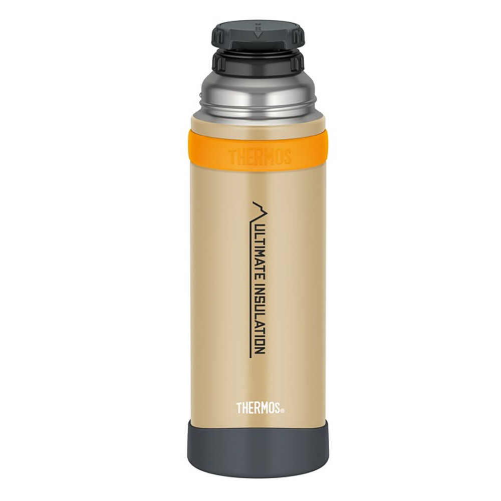 Le thermos Mountain à double paroi de Thermos est fabriqué en acier inoxydable de haute qualité tout en étant léger, comparable aux thermos en titane. Le manchon en caoutchouc sur le fond et l'anneau antidérapant sous le bouchon garantissent une manipulation sûre, même avec des gants épais, et protègent le thermos en cas de chute sur le sol. Il suffit de desserrer le double bouchon d'un demi-tour pour pouvoir le verser en douceur. Il conserve les boissons chaudes pendant 36 heures et les boissons froides pendant 40 heures.