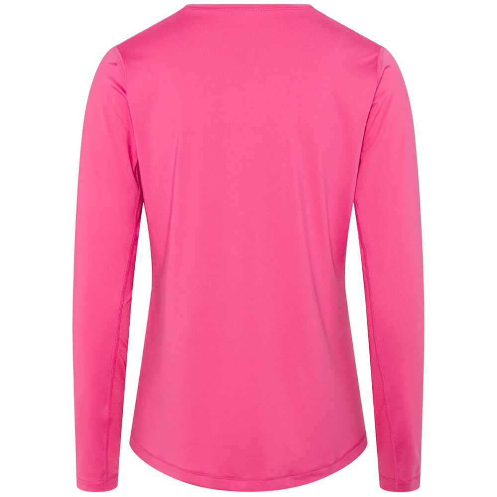 Le T-shirt est fabriqué dans une matière respirante à séchage rapide. Les panneaux en maille filet permettent d'évacuer encore plus d'humidité du corps. Les coutures plates ne provoquent pas d'ampoules désagréables. La coupe féminine avec encolure ronde et manches longues vous va comme un gant. Les détails réfléchissants augmentent votre sécurité en cas de faible visibilité. Le design épuré est complété par un petit logo en caoutchouc.