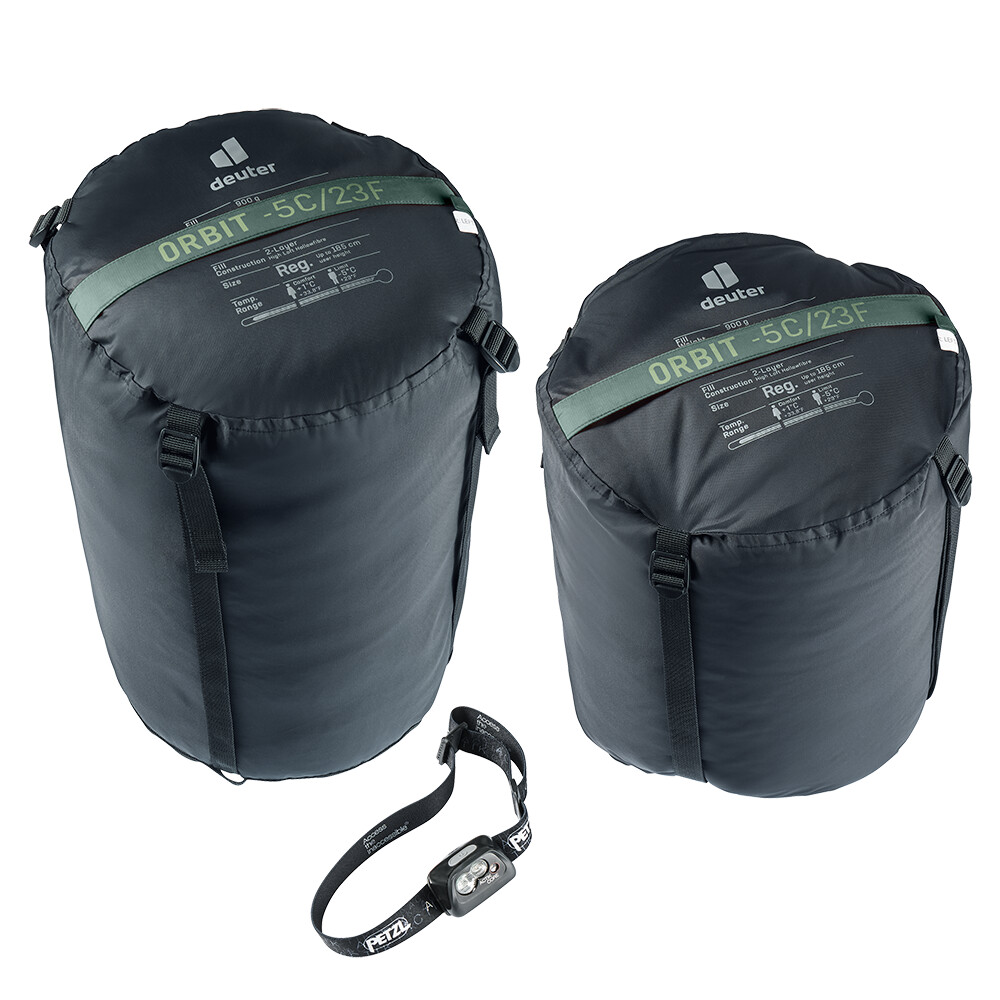 L'Orbit -5° est un sac de couchage deuter en polyester recyclé qui vous permettra de dormir confortablement pendant les nuits fraîches du printemps et de l'été, dans une tente ou sous une tente. La partie intérieure du sac de couchage est faite d'un mélange de coton, de sorte que le sac de couchage bruisse moins lorsque vous bougez et donne la sensation de dormir dans un drap de lit classique. La partie extérieure est une construction sans couture, ce qui rend le sac de couchage plus chaud (pas d'éclatement des coutures) et mieux à même de résister à l'humidité. De plus, il est disponible dans une couleur vert foncé, ce qui le rend idéal pour les amoureux de la nature, les pêcheurs et les randonneurs qui ne veulent pas perturber la paix de la forêt avec des couleurs criardes.