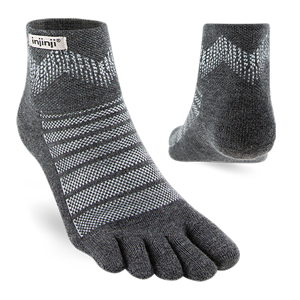 Les chaussettes Outdoor Midweight Mini-Crew en laine d'Injinji sont adaptées à la vie quotidienne et aux activités de plein air telles que la randonnée.