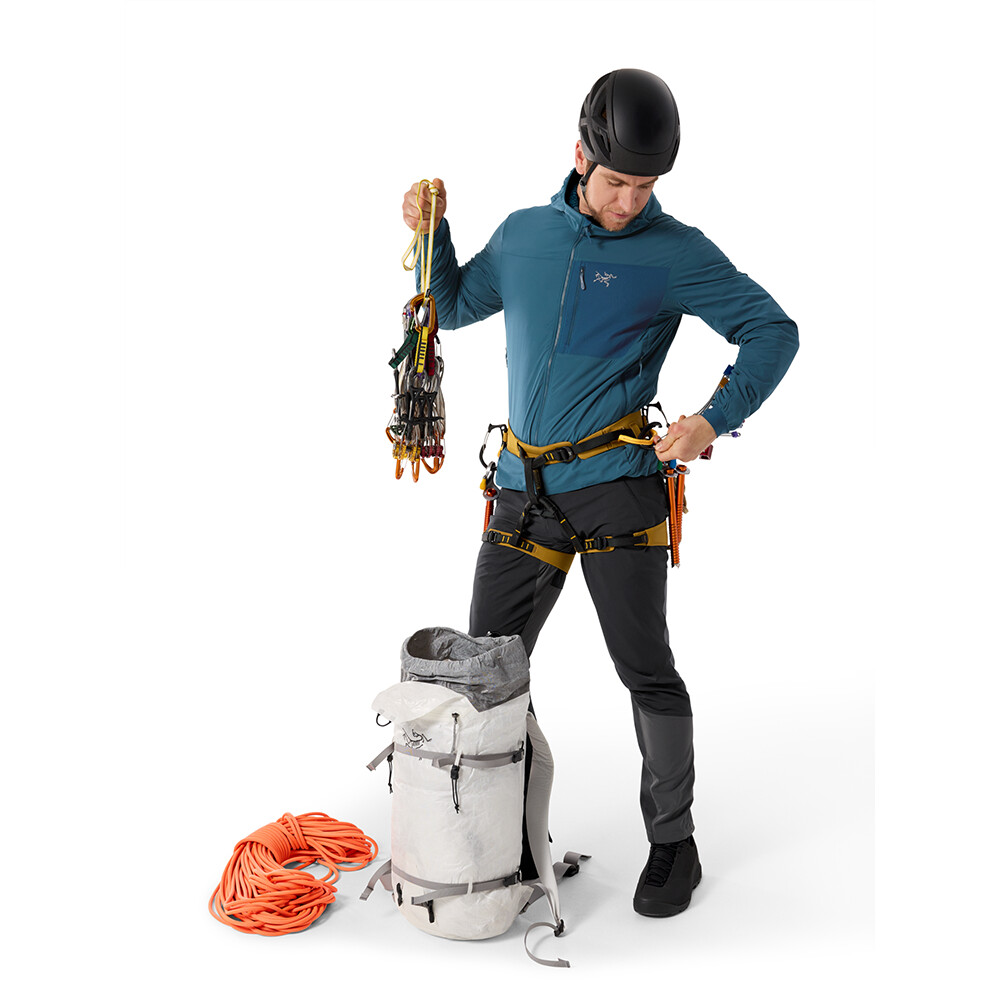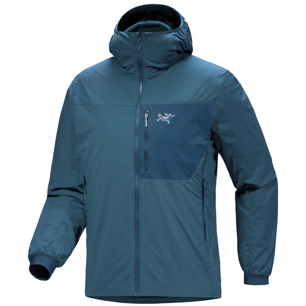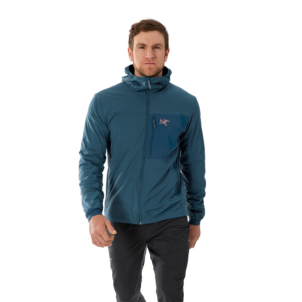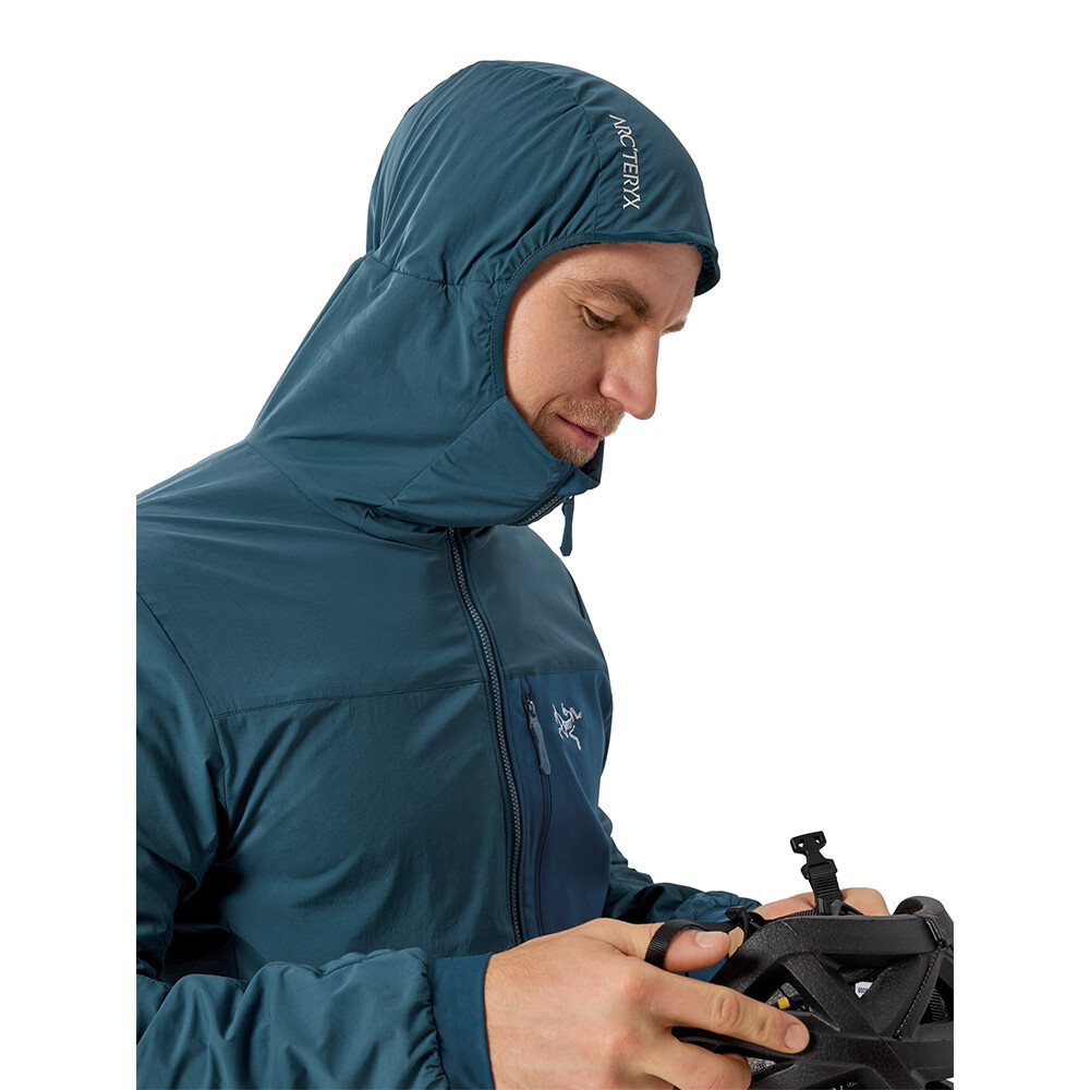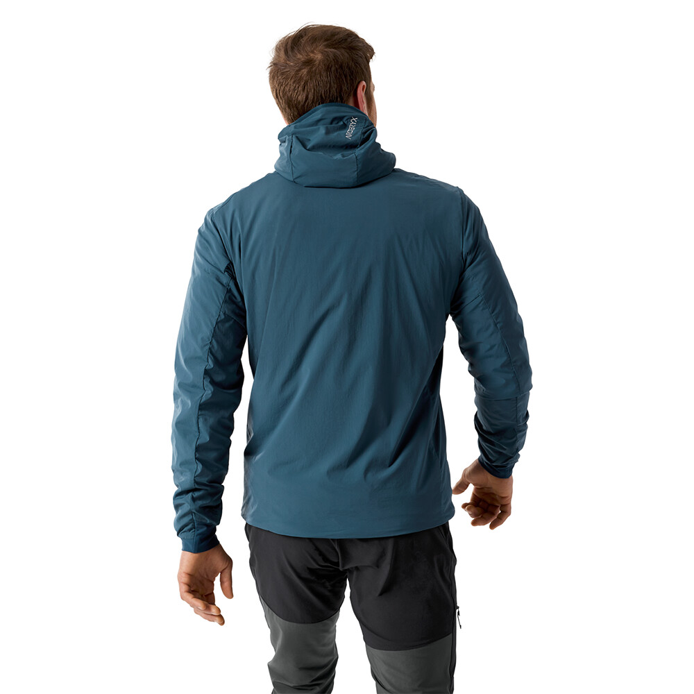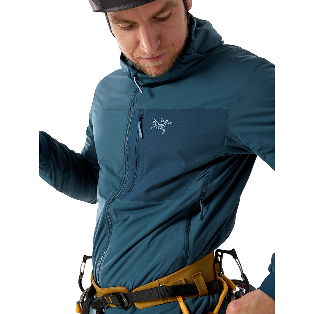 Veste isolée avec capuche pour homme d'Arc'teryx. Le rembourrage synthétique chaud est complété par un matériau polaire extensible sur les côtés pour favoriser une meilleure respirabilité.