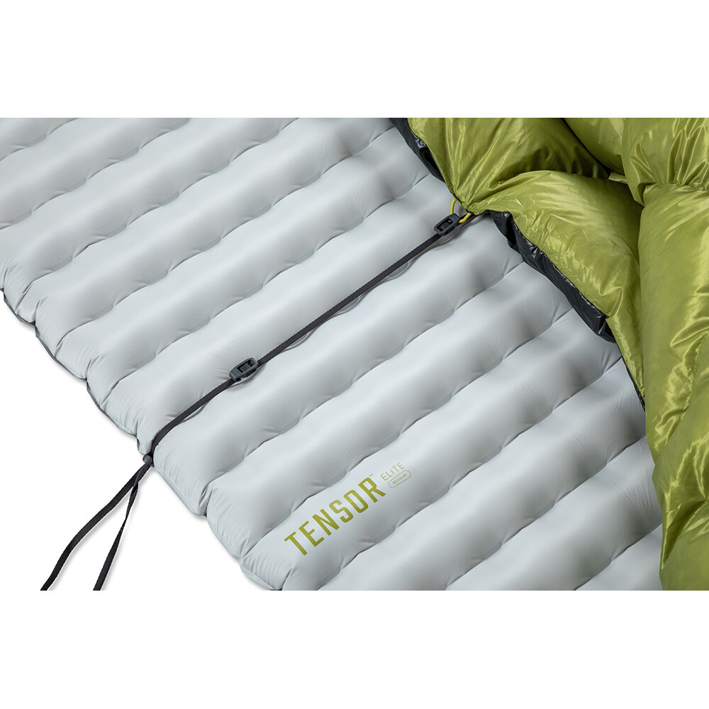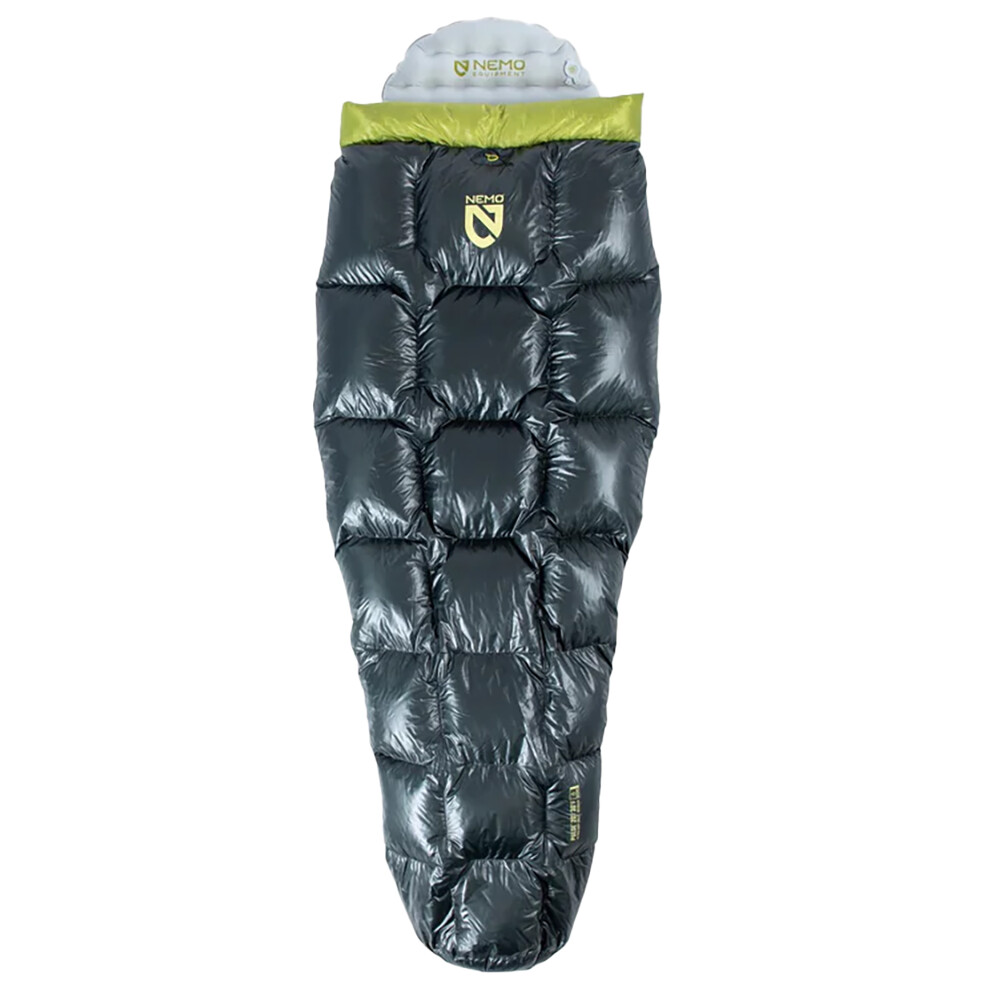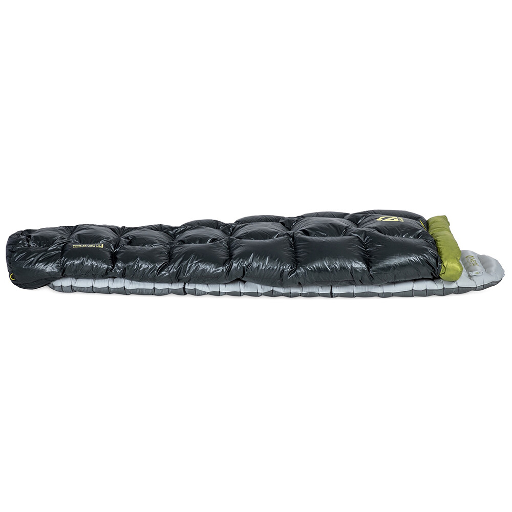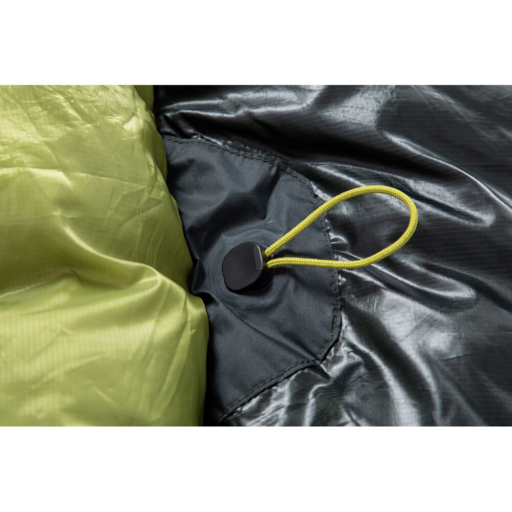 La couverture de type quilt, c'est-à-dire un sac de couchage sans fermeture éclair, sans capuche et sans la partie isolante inférieure, est idéale comme option légère pour dormir dans une tente, un sac de couchage ou un hamac. L'isolation se compose de duvet de haute qualité avec protection contre l'humidité (couche avec particules d'or). L'édredon est conçu comme une couverture matelassée pour éviter qu'il ne s'affaisse, de sorte que les plumes restent uniformément réparties. La partie supérieure autour du cou est munie d'un cordon de serrage et peut être attachée dans le dos. Des sangles sont également incluses pour la fixation au matelas d'une voiture. Le Quilt Pulse fait partie de la collection Endless Promise de Nemo, qui s'engage à produire de manière durable en utilisant des matériaux recyclés.