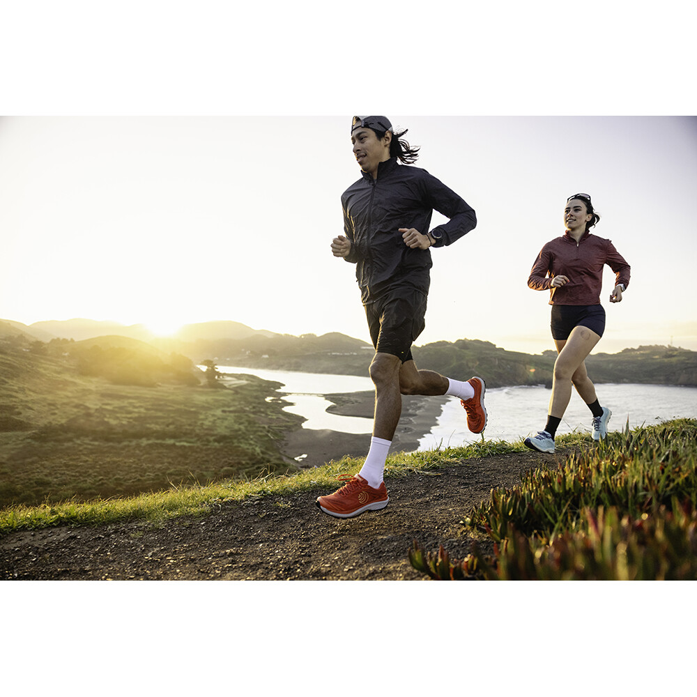 Chaussures de course unisexes exceptionnelles. La tige élastique, la semelle intermédiaire et la semelle extérieure forment une unité compacte. Offre une stabilité et une excellente traction sur toutes les surfaces. Chaussettes incluses. Gagnante du prix ISPO 2024.