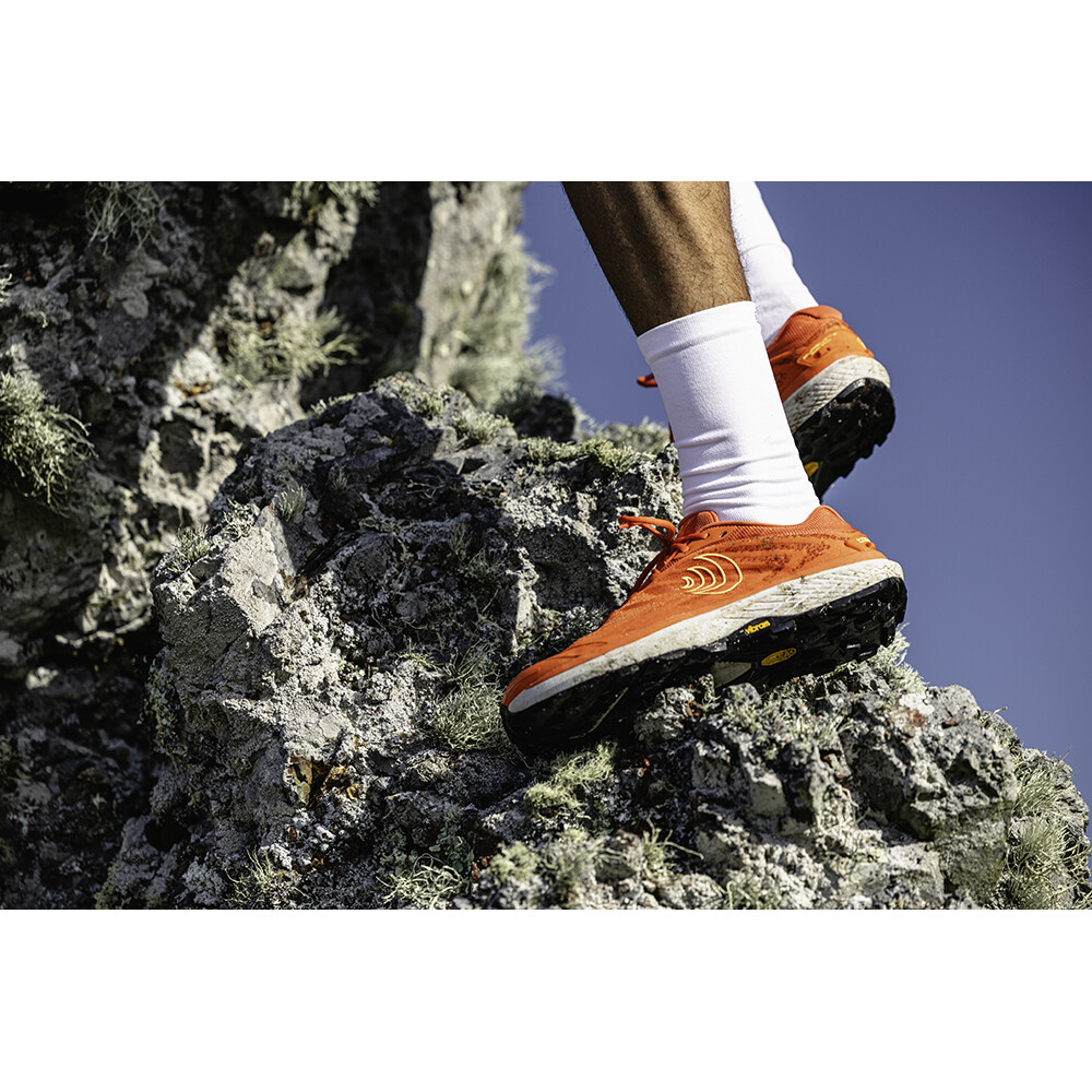 Vista est une chaussure de trail pour homme conçue pour les terrains difficiles, les longs sentiers et la marche confortable de tous les jours. Elle est dotée d'une boîte à orteils spacieuse, d'une excellente semelle intermédiaire ZipFoam et d'un amorti de 5 mm.