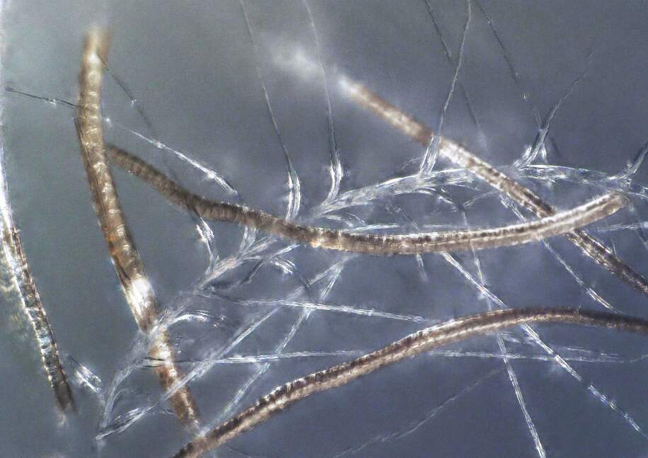 Mais un simple mélange des deux matériaux n'aurait pas donné les meilleurs résultats. Et mélanger du duvet de mouton avec du duvet de plumes ! Non, non, les ingénieurs allemands ont forcé les fibres naturelles à travailler ensemble à l'aide d'énormes pressions appliquées par impact, de sorte que les plumes et la laine "tirent" littéralement l'une sur l'autre. Le résultat est un mélange très homogène, comme vous pouvez le voir sur l'image de microscope ci-jointe. Ce mélange a un gonflant presque explosif et d'excellentes propriétés d'isolation thermique, qui ne disparaissent pas même après avoir été mouillé.