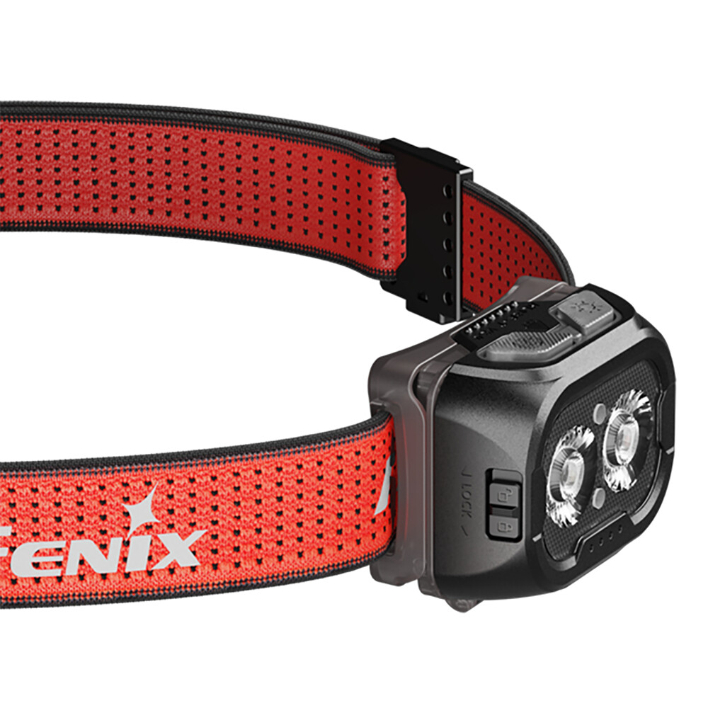 Lampe frontale rechargeable de Fenix, dont la petite taille convient parfaitement au trail running, au cyclisme et à d'autres activités sportives rapides. Elle est équipée de deux LED, le réflecteur principal émettant une lumière blanche froide (appelée lumière du jour) et le réflecteur secondaire émettant une lumière blanche chaude (non combinable). La lumière chaude pénètre mieux le brouillard, la pluie et la neige, ce qui permet de l'utiliser dans des conditions météorologiques difficiles. Le réflecteur principal offre quatre modes d'éclairage et un flux lumineux maximal de 800 lumens, le second réflecteur offre un rendement maximal de 500 lumens et vous pouvez également choisir parmi quatre modes d'éclairage. La lampe frontale est également équipée d'une lumière rouge, d'un flash SOS rouge et d'un sifflet intégré à la sangle pour les situations d'urgence.