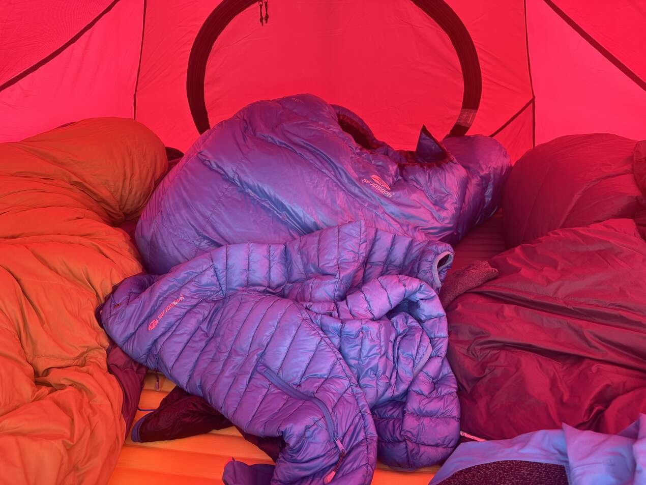 Mais là encore, attention. Aujourd'hui, les vestes dites "hybrides", qui combinent duvet et rembourrage synthétique (aux endroits les plus exposés à l'humidité), ne font pas exception à la règle. Ou encore , pensez à DownWool: le fabricant allemand spécifie un remplissage standard de duvet, mais le mélange ensuite uniformément avec de la laine de mouton, ce qui, paradoxalement, fait croître le gonflant au fur et à mesure que l'humidité augmente. Ainsi, à votre retour d'expédition, il se peut que votre sac de couchage contienne plus de plumes qu'au moment de l'expédition !