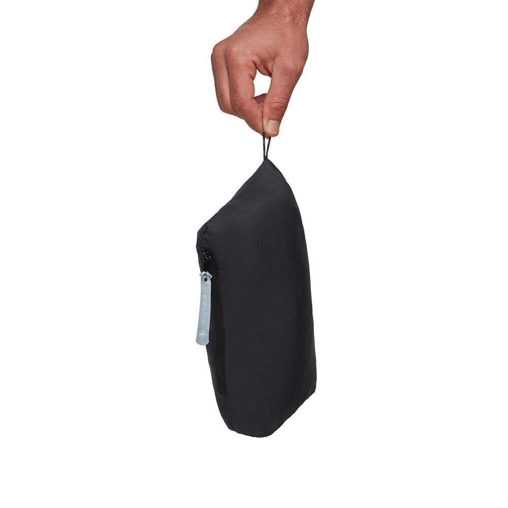 La veste est fabriquée dans un matériau extrêmement léger, résistant au vent et à l'eau. L'isolation synthétique Mammut Loopinsulation est issue du recyclage des cordes d'escalade. Des panneaux en matière élastique assurent la respirabilité et la liberté de mouvement. La capuche bien ajustée se glisse parfaitement sous un casque. Les deux poches sont faciles d'accès, même lorsque la ceinture ventrale du sac est attachée. Rangez vos petits objets dans la poche intérieure zippée. Les manches et l'ourlet sont terminés par un poignet élastique. Vous pouvez simplement ranger la veste dans la poche.