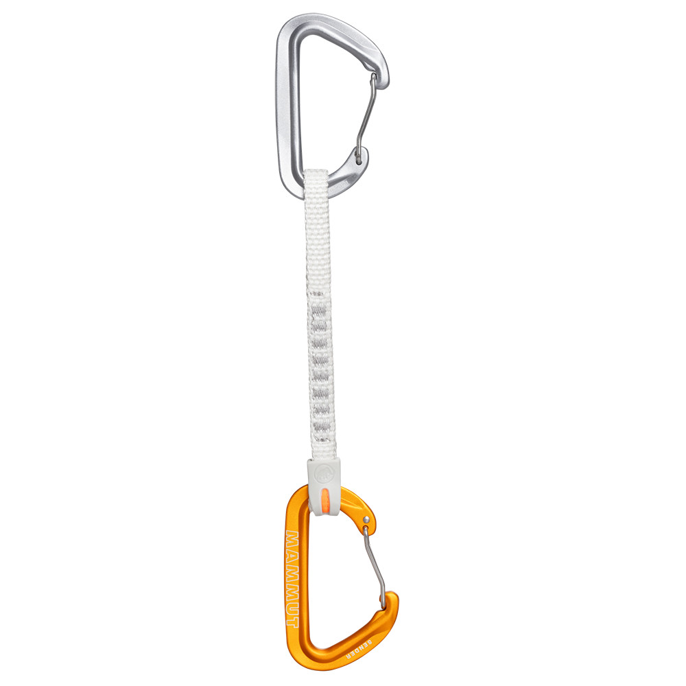 Minimalist Sender Wire express with extended belt by Mammut. Les fils express rallongés s'avèrent pratiques lorsque vous souhaitez cliquer l'assurage sous un surplomb ou dans des zones traditionnellement armées. Grâce aux mousquetons à fil, le mousqueton Sender dispose d'un grand dégagement pour le verrouillage ouvert, malgré ses dimensions subtiles.