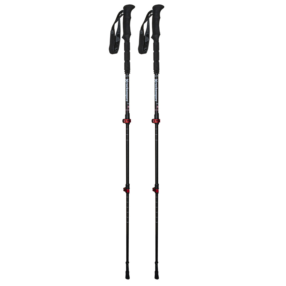 Bâtons de trekking en trois parties avec poignée ergonomique en mousse allongée et boucle réglable. Système de verrouillage pour un réglage rapide du bâton en fonction des besoins.