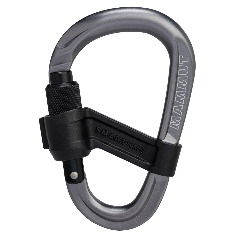 Le Smart HMS de Mammut est un mousqueton doté d'un dispositif de fixation de la position. La partie en plastique du mousqueton sert à maintenir le mousqueton dans la bonne position par rapport au siège et à l'assureur pendant l'assurage. Ceci est très important et permet d'éviter des situations dangereuses. En même temps, le fixateur ne peut être fermé que si le verrou est vissé.