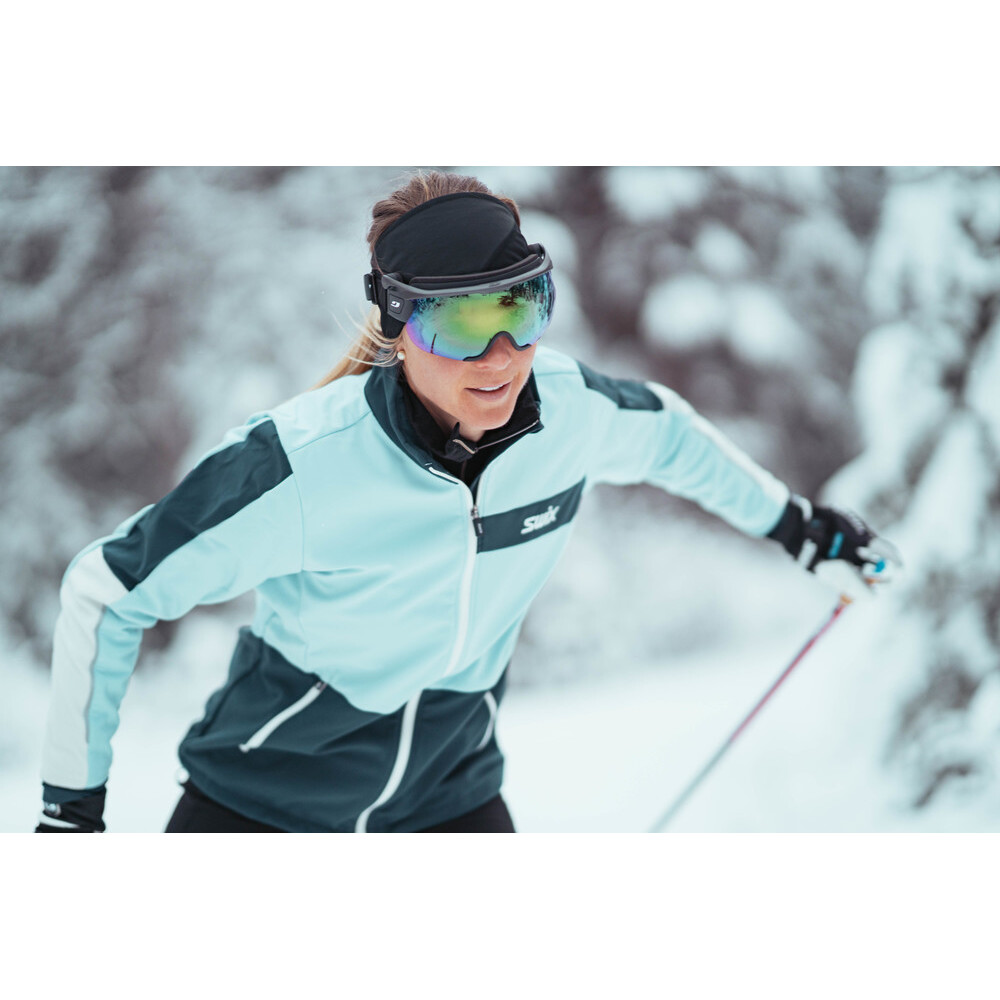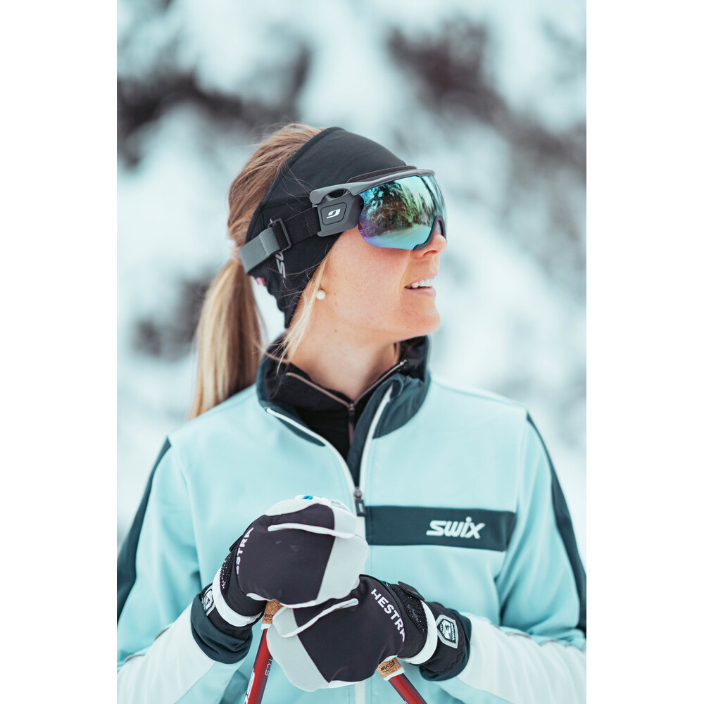 Lunettes conçues pour le ski de fond intensif et le biathlon. Elles sont dotées de lentilles photochromiques avec filtre de catégorie 1-3 et toute la visière peut être relevée. La variante M est conçue pour les utilisateurs dont le visage est plus étroit.