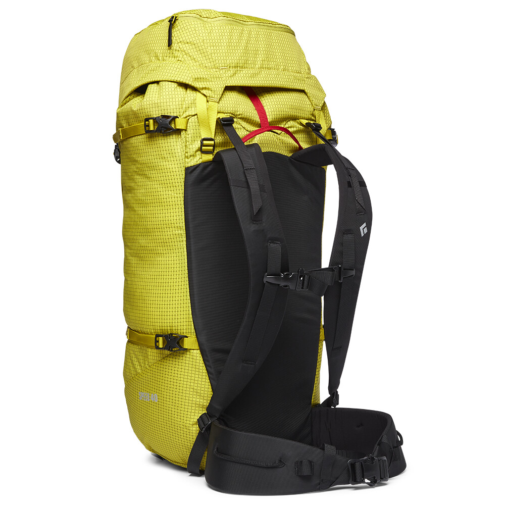 Un compartiment principal accueille tous vos vêtements, qu'il s'agisse de pantalons d' escalade ou de bonnets, ainsi que les échos ou la nourriture séchée. Les documents personnels, le portefeuille ou la lampe frontale se rangent dans la poche extérieure du couvercle supérieur. De nombreux équipements, qu'il s'agisse de cordes, de différentes sangles et de mousquetons, de piolets ou de crampons, peuvent être fixés à l'aide de poignées et de boucles pratiques sous le couvercle, sur le devant du sac ou sur la ceinture de hanches. Ajustez la taille du sac avec les sangles de compression latérales pour créer un partenaire unique et compact qui vous soutiendra dans toutes vos activités.