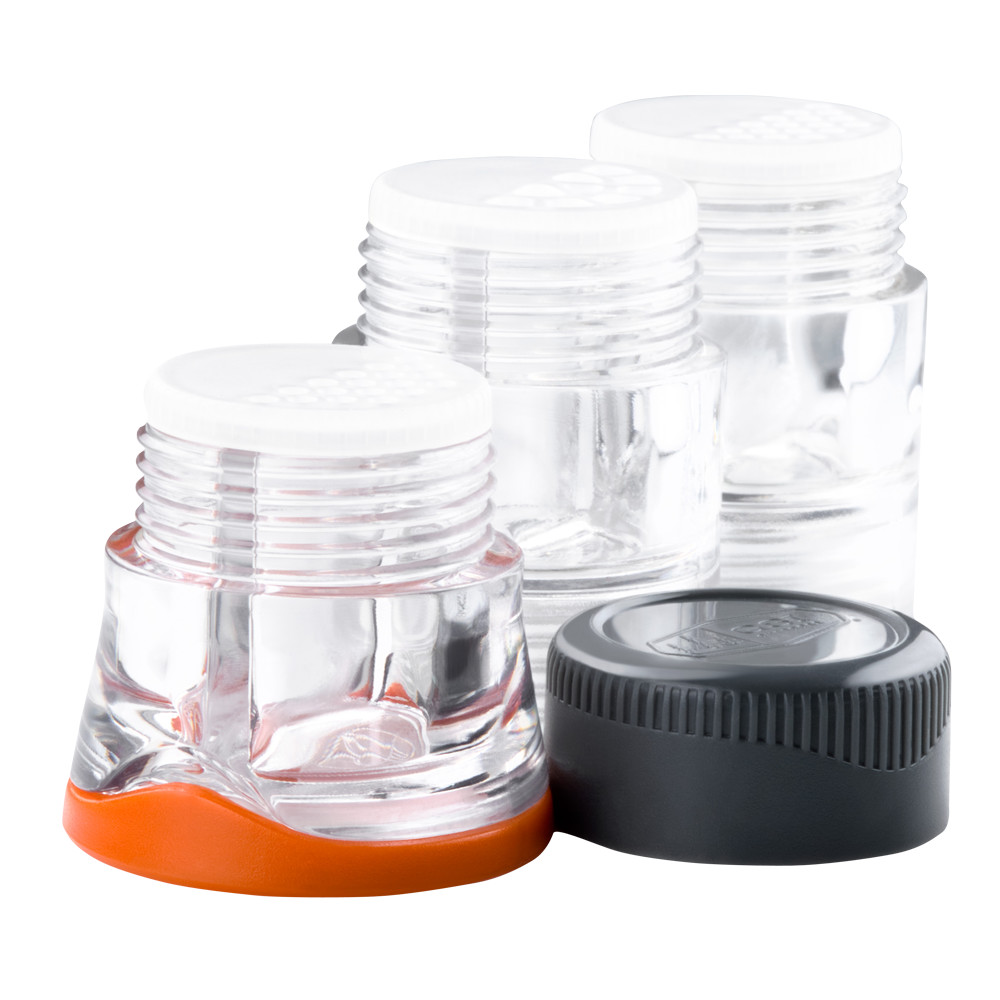 Les pots à épices étanches et empilables de GSI Outdoors se vissent simplement les uns sur les autres pour gagner de la place tout en gardant toutes vos épices à portée de main. Chaque pot à épices est divisé en deux boîtes distinctes, ce qui vous permet de conserver, par exemple, le sel et le poivre dans un seul pot à épices.