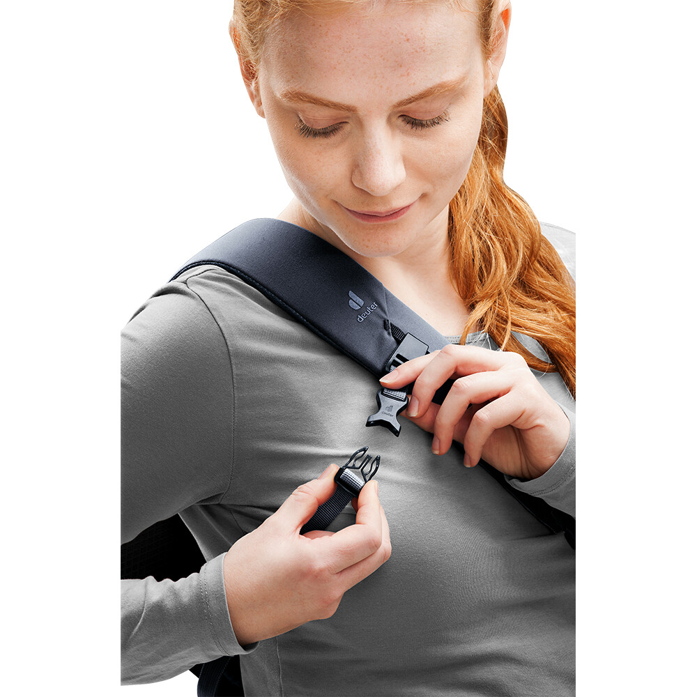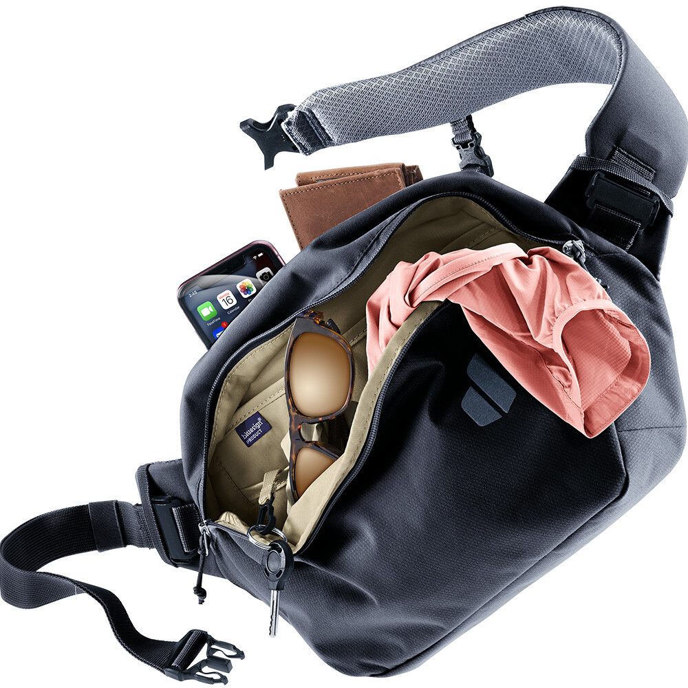 L'élégant sac à bandoulière Stroof 5 de Deuter vous permet de sortir en ville en toute simplicité, même si vous avez besoin de plus de choses. La poche principale peut contenir votre portefeuille, vos lunettes et même un T-shirt à manches longues. Il y a également un compartiment séparé et rembourré pour la tablette. Grâce à sa sangle réglable, vous pouvez le porter à l'épaule ou en travers du corps. De plus, il est doté d'une sangle de poitrine amovible, qui permet au sac de mieux tenir sur le corps et de le porter sur l'épaule gauche ou droite.