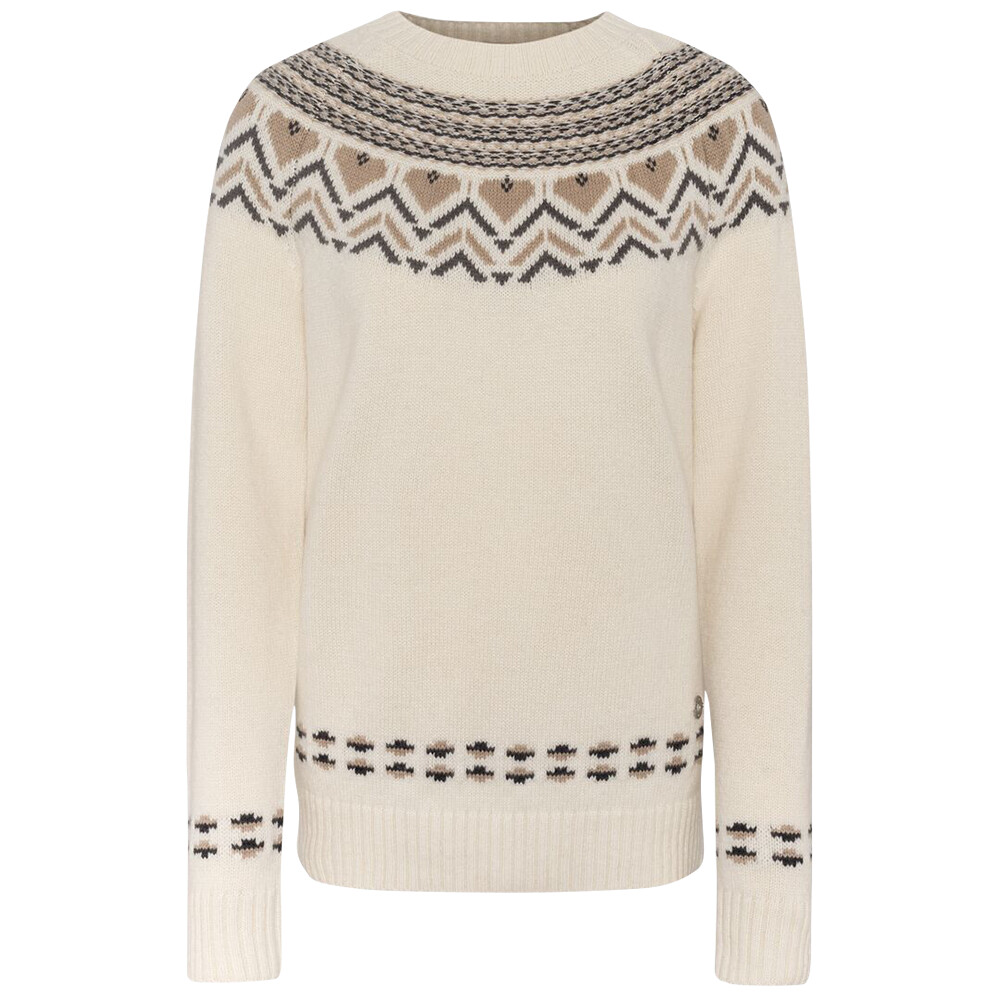 Pull Snow à col rond pour femme de l'entreprise suédoise Fjällräven, à porter au quotidien. Il est composé à 100 % de laine dont l'origine est traçable.