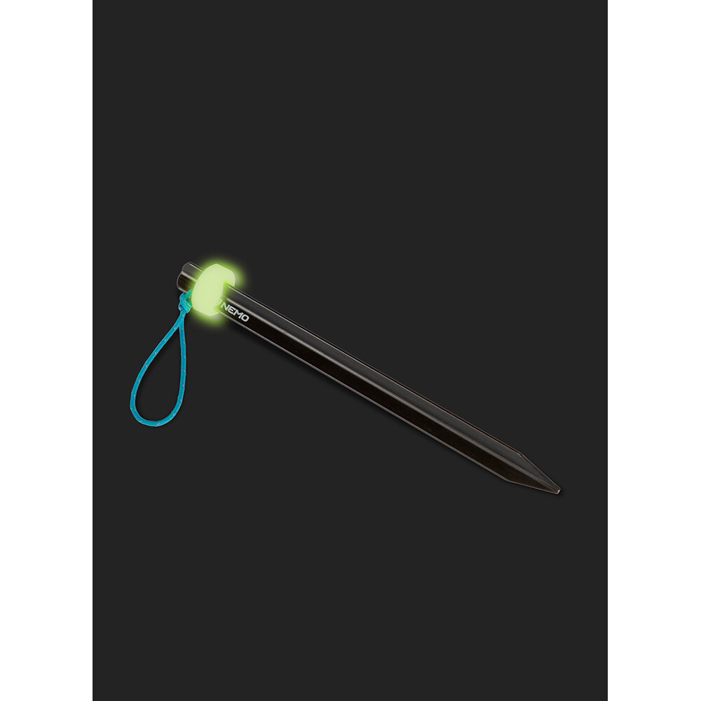 Les piquets de tente Nemo sont en forme de Y, ce qui leur permet de tenir dans les terrains boueux ou dans la neige. De plus, ils sont dotés d'un anneau en polymère phosphorescent dans l'obscurité, ce qui rend le piquet très visible. L'anneau peut être glissé le long du piquet, ce qui permet de le nettoyer facilement une fois qu'il a été retiré du sol.