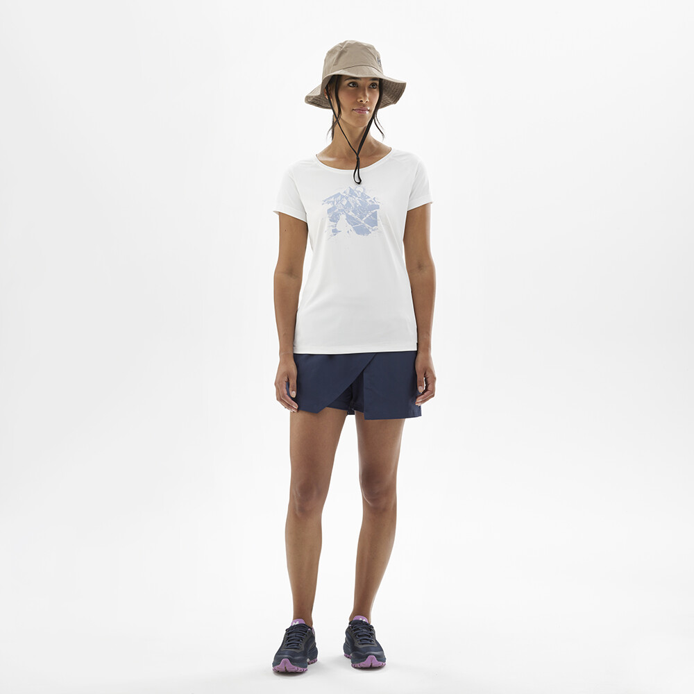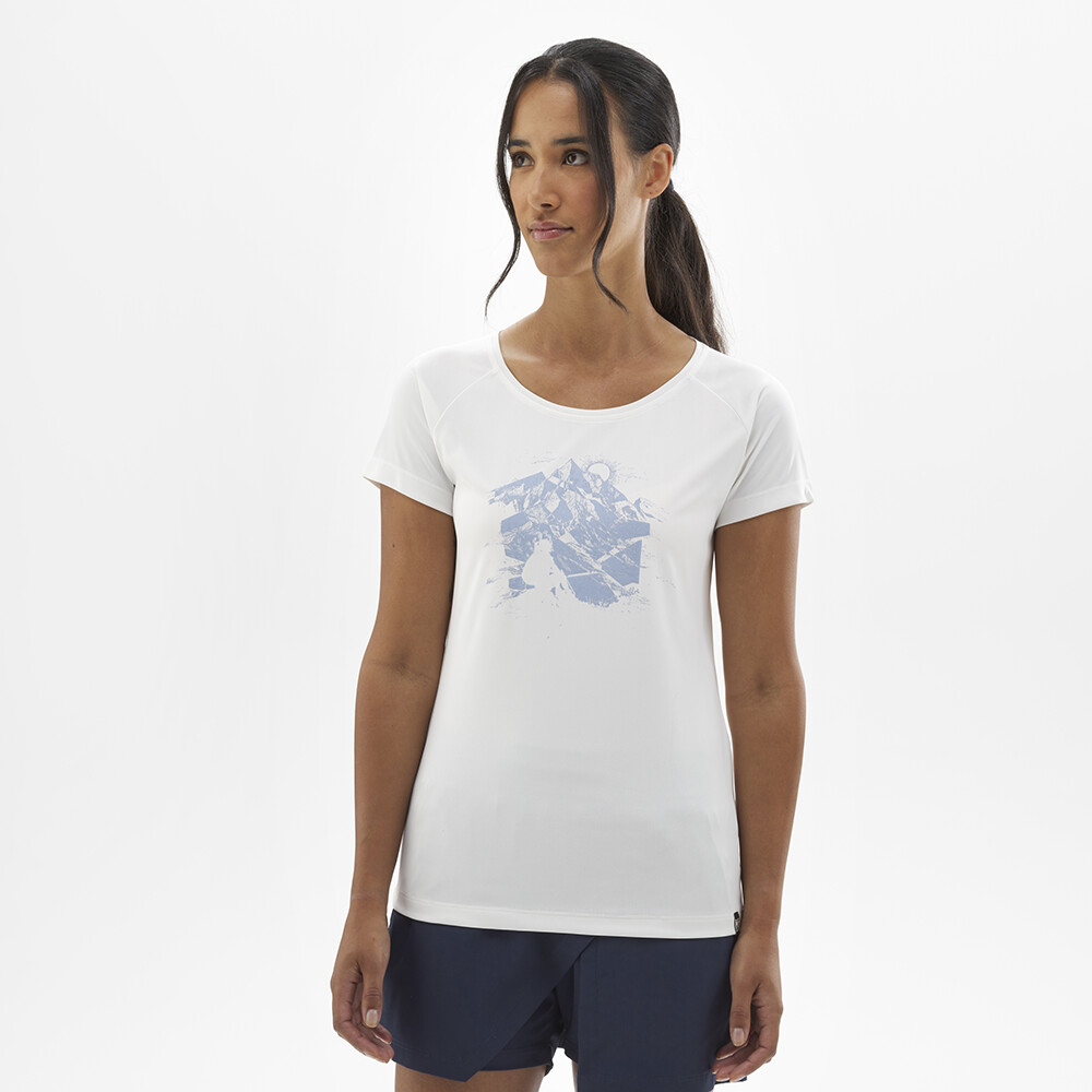 Le T-shirt est fabriqué dans une matière respirante. La coupe femme avec ses manches courtes et son col rond est très agréable à porter. Toutes les femmes sportives aimeront l'imprimé montagne sur la poitrine.