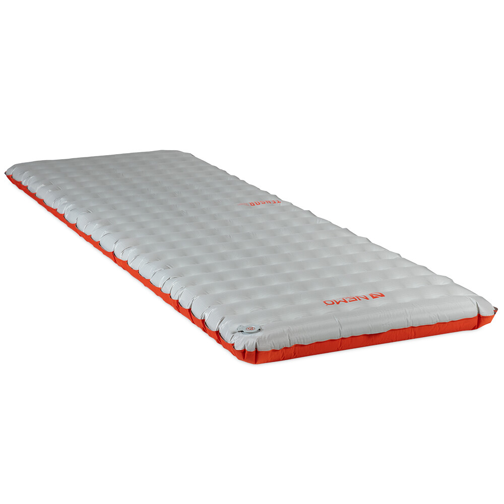 Le Tensor All-Season de Nemo offre le meilleur équilibre entre une épaisseur confortable, d'excellentes propriétés isolantes et un poids léger. C'est le choix idéal pour camper et dormir dans une tente tout au long de l'année. Vous apprécierez particulièrement son poids léger et sa petite taille lorsqu'il est emballé, car il prend autant de place dans le sac qu'une bouteille d' eau d'un litre lors des randonnées de plusieurs jours. Vous pouvez utiliser le sac à pompe Vortex™ pour le gonfler, ce qui évite l'accumulation inutile d'humidité à l'intérieur du matelas. Le matériau plus résistant de la face inférieure permet d'utiliser le matelas même sur des terrains plus accidentés.