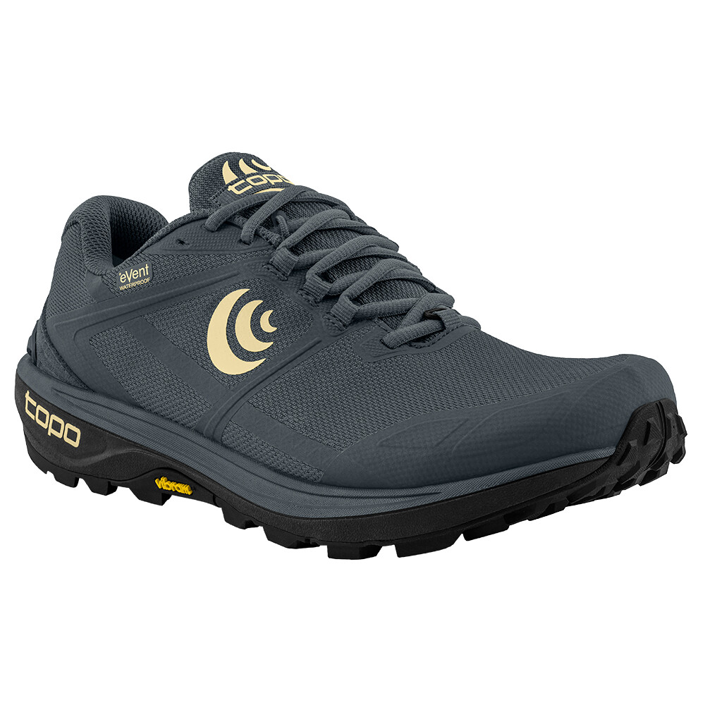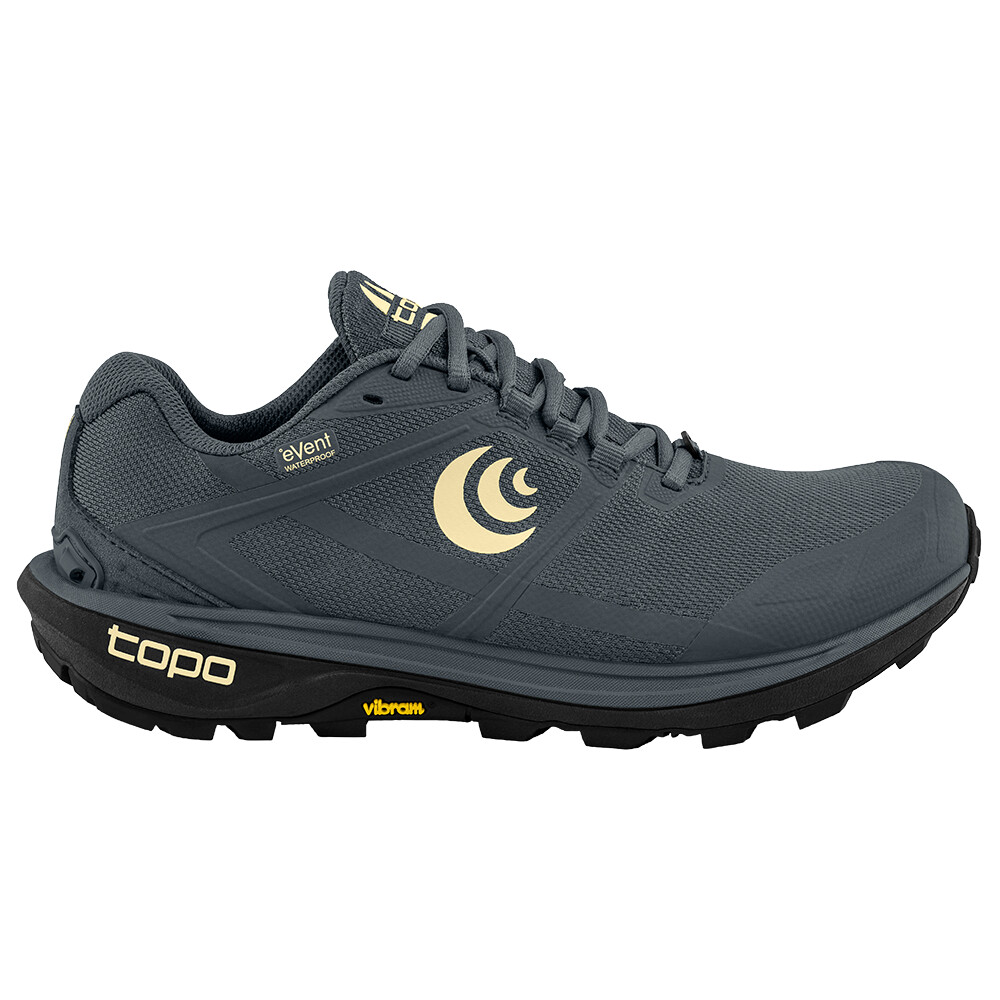 La Terraventure 4 WP est une chaussure de trail pour femme de l'entreprise américaine Topo Athletic™. Elle convient aux randonneuses, aux coureuses et aux adeptes de l'ultraléger qui se trouvent souvent dans des conditions humides ou variables. Grâce à la membrane eVent® entièrement intégrée, votre pied restera au sec même si vous marchez sous la pluie, à travers des flaques d'eau ou de l'herbe mouillée. La membrane est également respirante et évacue l'humidité de l'intérieur vers l'extérieur, de sorte que vous n'avez pas à vous soucier de la surchauffe ou de la sensation d'inconfort après quelques heures de marche.