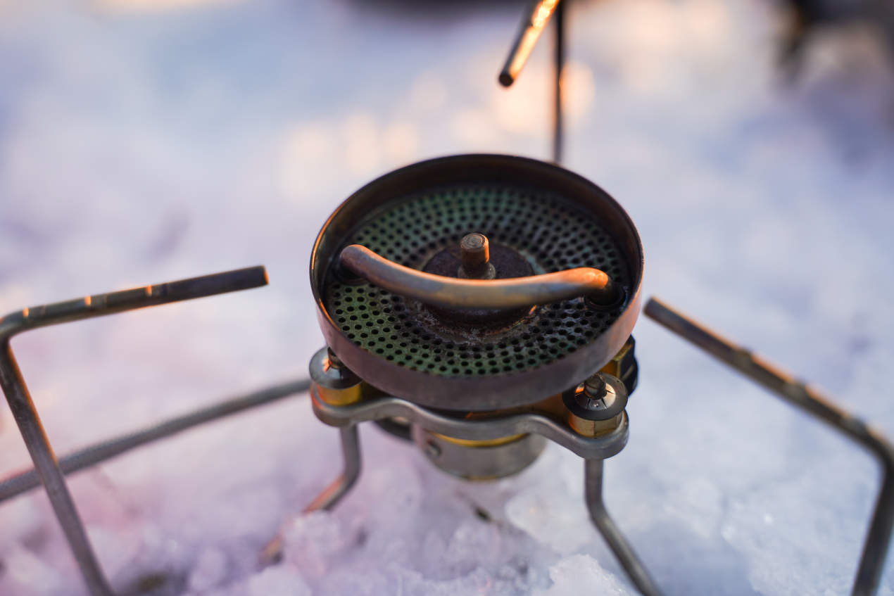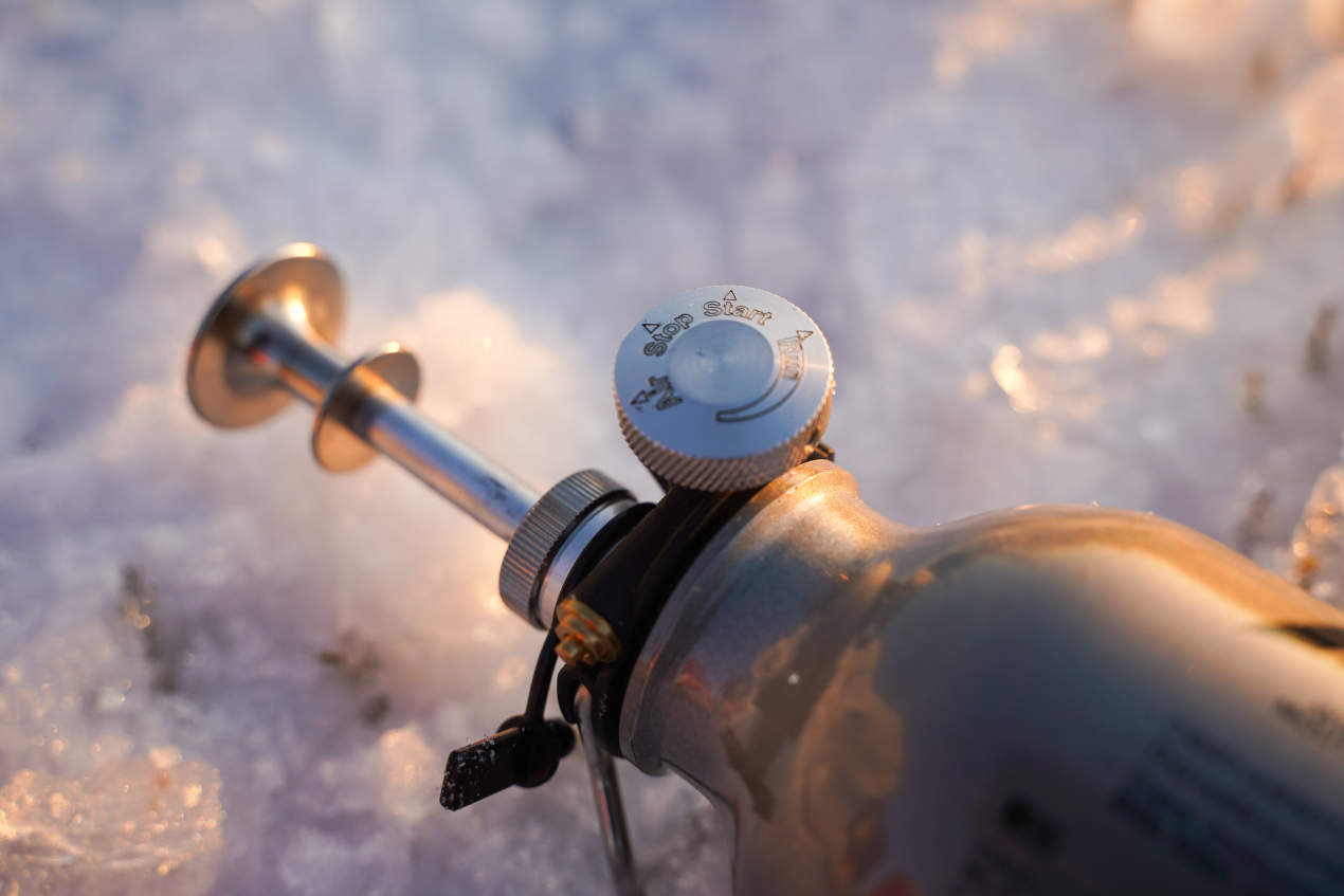 Le brûleur a une forme concave, avec un bord surélevé, ce qui devrait rendre la solution plus résistante au vent. Toutefois, dans la pratique, il faut toujours un volet supplémentaire pour protéger l'espace entre le brûleur et le fond de l'éjecteur, sinon le vent emporte les flammes et le chauffage prend sensiblement plus de temps. Le tube de gaz sur le brûleur accélère considérablement le préchauffage de la cuisinière. Le brûleur s'allume par le haut, de sorte que l'allumage de l'essence peut ne pas être immédiatement réussi, en particulier en hiver. L'essence très volatile peut aider quelque peu, mais même dans ce cas, elle peut ne pas suffire. Un briquet à jet convient pour l'allumage, mais il est rempli de butane, dont vous avez besoin pour vous réchauffer à des températures inférieures à zéro. L'allumette fonctionne, mais le vent peut poser problème. Un briquet classique n'est pas très compatible avec le réchaud, car il n'est pas conçu pour être allumé par le haut, et le bord surélevé du brûleur vous gêne. Avec un silex, je n'ai pas réussi à allumer le réchaud à des températures inférieures à zéro. L'allumage au propane-butane ne pose évidemment aucun problème.