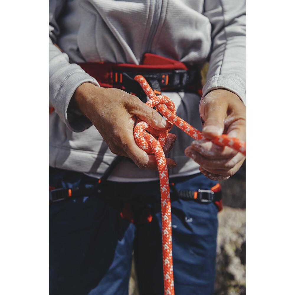 Harnais d'escalade adapté à la randonnée alpine. Le marquage par code couleur permet de l'enfiler facilement sans avoir à enlever les skis ou les crampons. Les boucles en forme d'ailettes sur la sangle de taille permettent de régler facilement la largeur de la taille, même avec des gants.