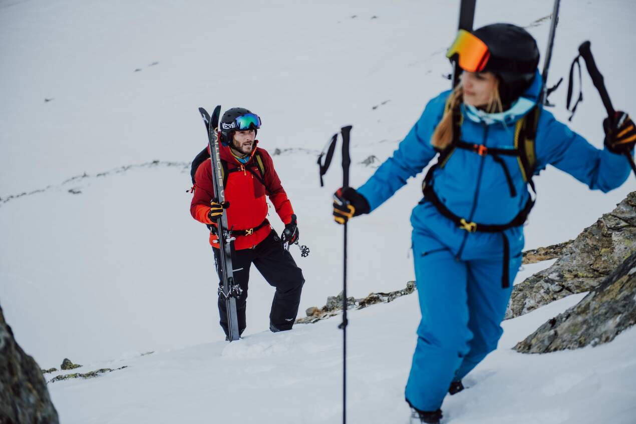 Les sous-vêtements trois-quarts sont de plus en plus populaires. Grâce à leur longueur, ils ne s'entassent pas et ne se chevauchent pas avec les chaussettes. Nous recommandons vivement l'utilisation de sous-vêtements en laine mérinos naturelle. Le principal avantage de ce matériau est qu'il n'a pas besoin d'être lavé après chaque utilisation. En cas de randonnée à ski de plusieurs jours, le mérinos est absolument indispensable, car on n'emporte qu'un minimum de vêtements de rechange pour gagner du poids.