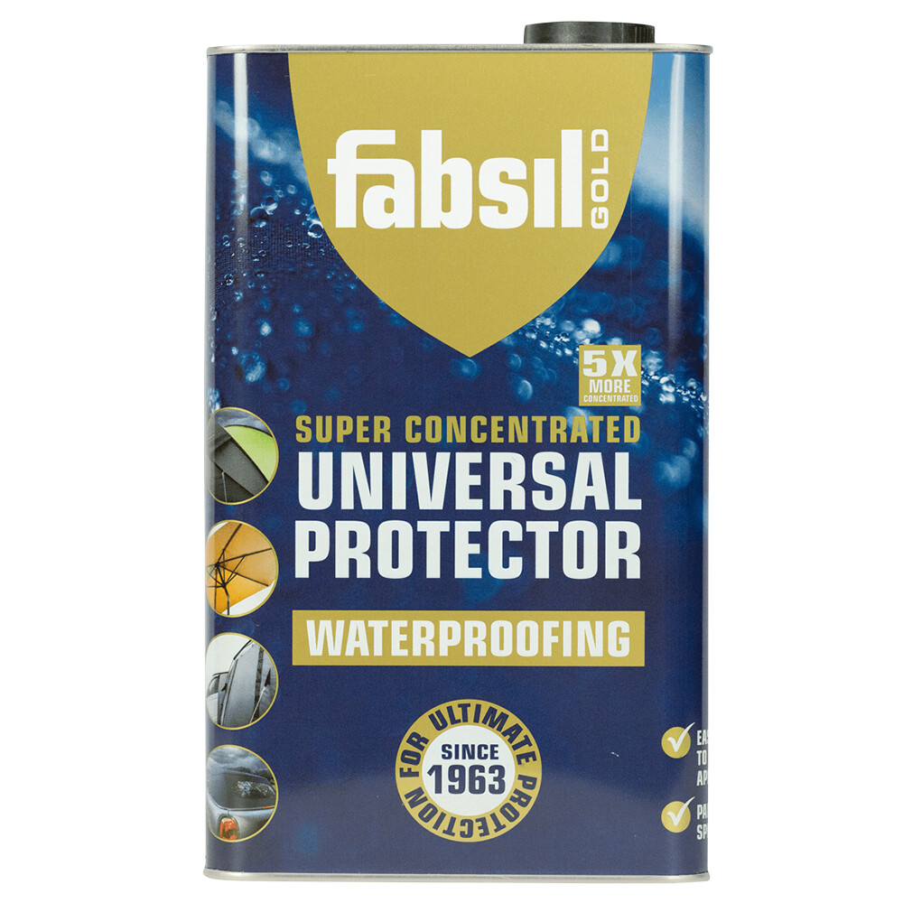Universal Protector Gold de Grangers, qui imprègne les sacs à dos ou tout autre tissu de grande taille. Séchage rapide, incolore, inodore. 1 litre couvre jusqu'à 18 m2 de nylon, 7,5 m2 de tissu léger et 5 m2 de tissu de poids moyen.