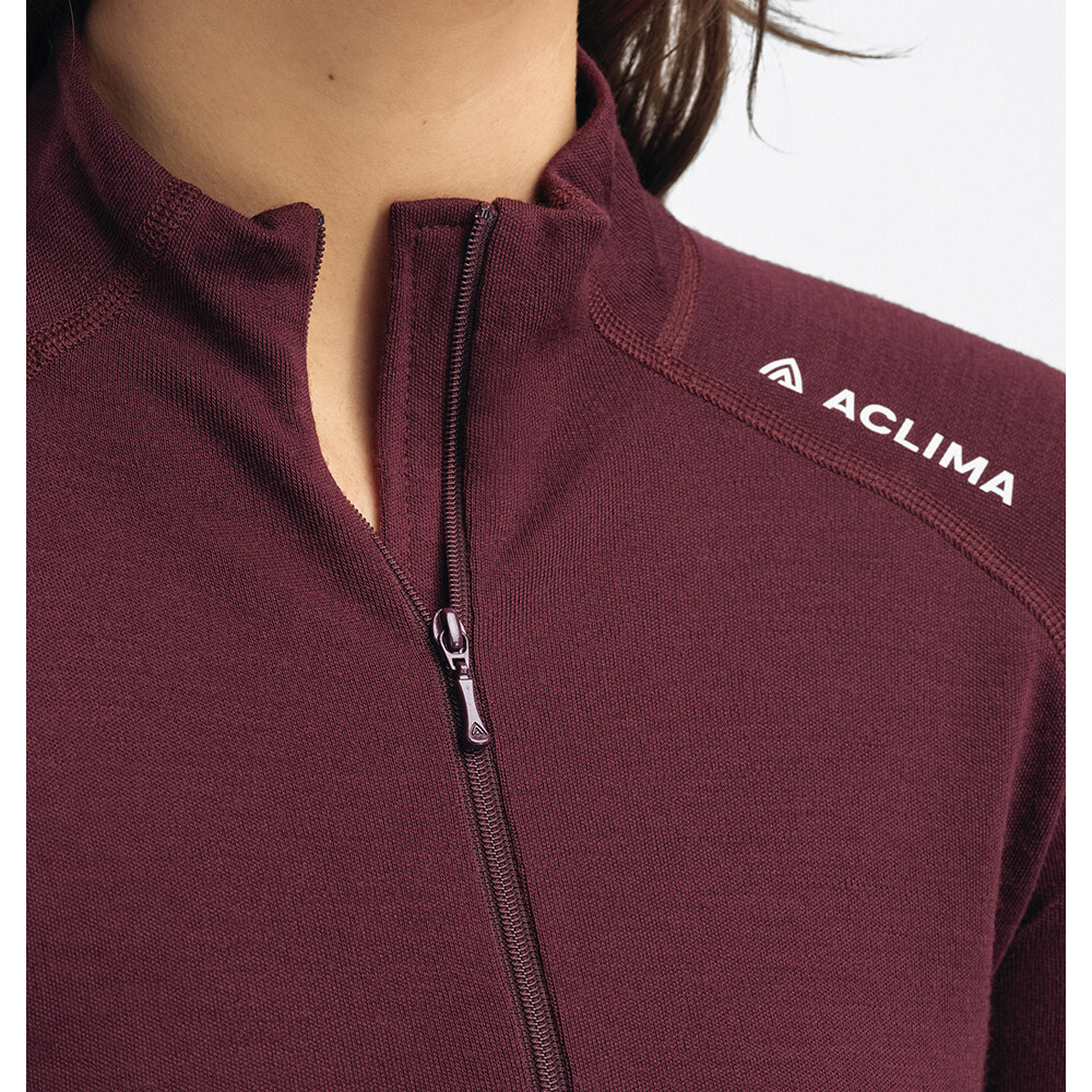 Le T-shirt fonctionnel WarmWool Mockneck en laine mérinos pour femmes fait partie de la ligne WarmWool, qui est probablement la série de sous-vêtements la plus populaire d'Aclima. Ce t-shirt à manches longues avec col montant zippé convient à toutes sortes d'activités, en particulier aux randonnées et aux longues promenades, car la laine respire très bien et régule la température corporelle.