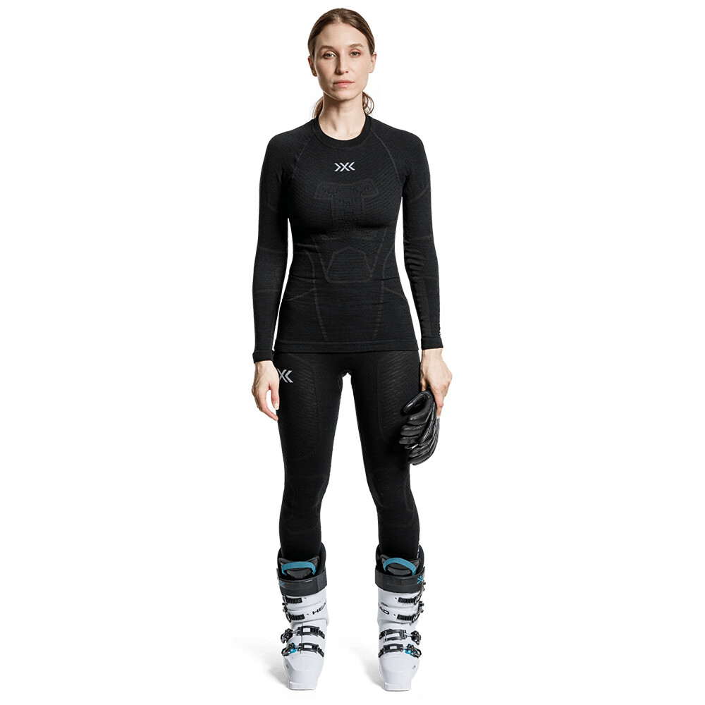 Pantalon Symbio Merino pour femme de la marque suisse X-Bionic®. La combinaison de la fibre naturelle de laine mérinos et d'une technologie de pointe assure un confort thermique idéal et une grande liberté de mouvement.
