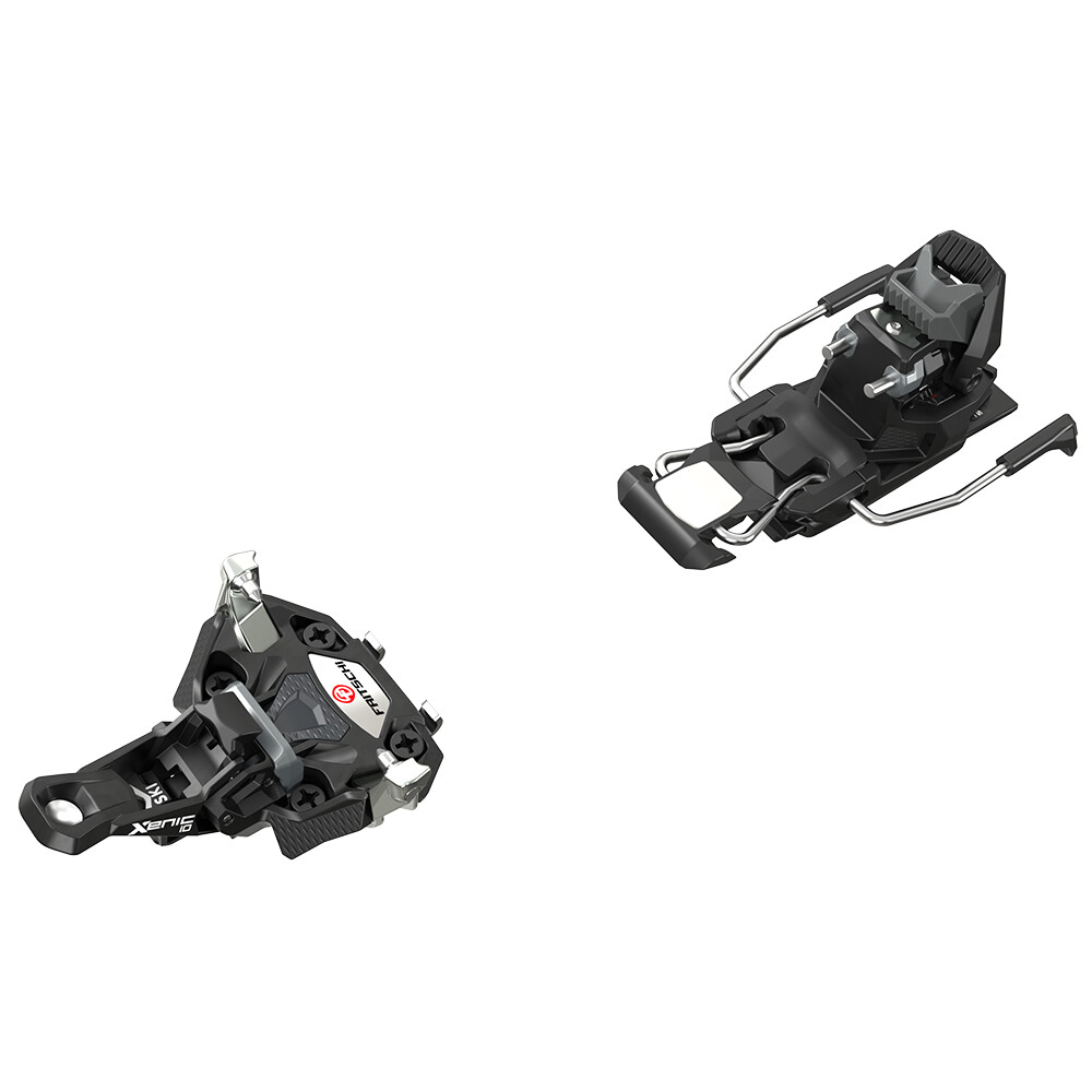 Dans sa catégorie, la Xenic plus 10 de Fritschi impressionne par ses performances exceptionnelles en descente et son ensemble complet de technologies de sécurité. La Xenic Plus se caractérise par une entrée facile grâce à sa butée fixe et à son empreinte large. Il est doté d'une technologie sophistiquée pour une manipulation aisée et d'une pointe innovante pour une position sûre en descente. Elle dispose d'une longueur de talon réglable de 10 mm et d'une large base de talon pour un transfert direct de la puissance en descente. Le poids de la fixation est de 590 g sans les freins. La valeur de réglage DIN va de 4 à 10 et peut être réglée à la fois verticalement et latéralement. La force d'éjection peut être réglée indépendamment et en continu. Le pied a la possibilité d'ajuster la position neutre, en mode 1 elle est de 7° et en mode 2 elle est de 11° - la fixation peut être ajustée individuellement à n'importe quel terrain pendant la marche.